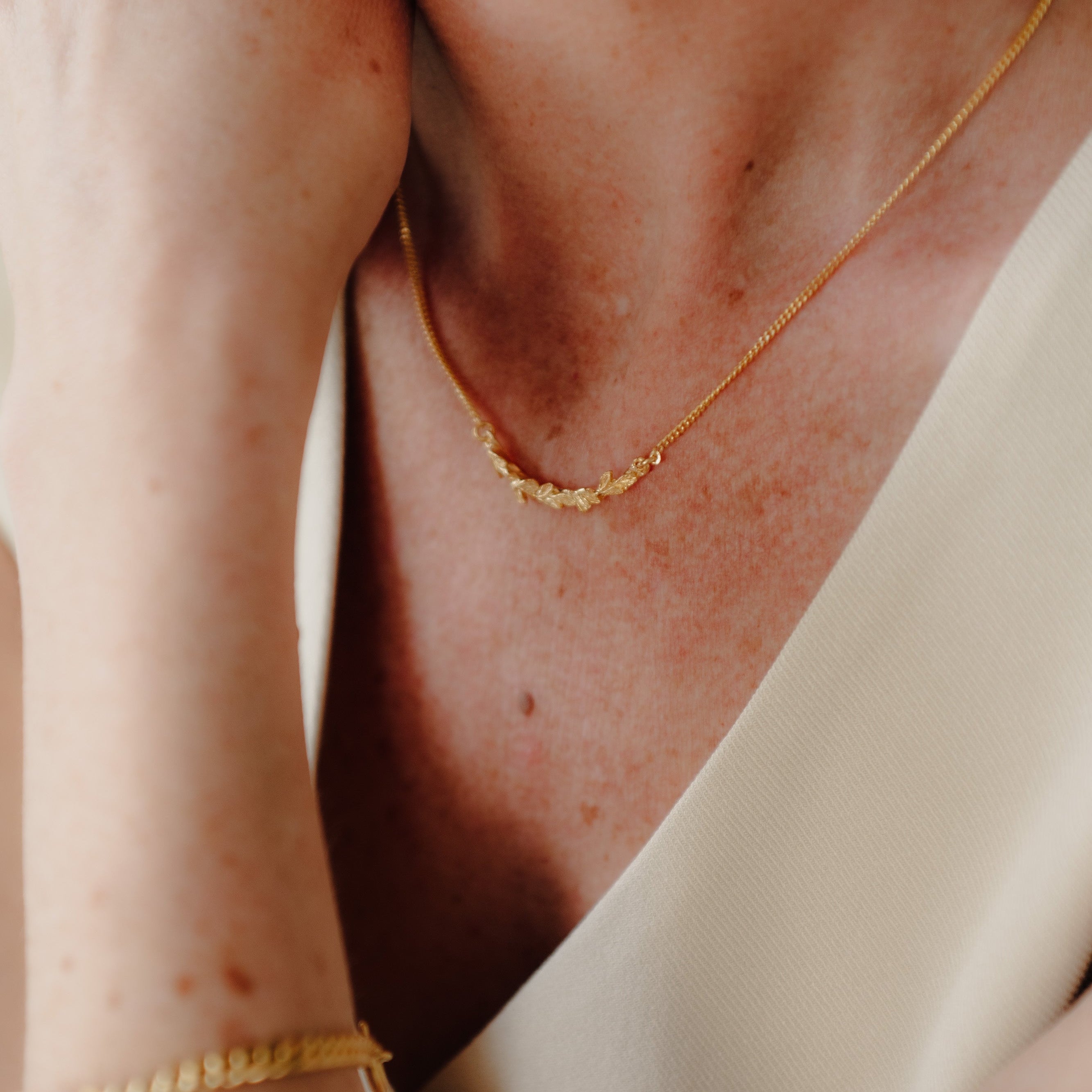 Deze Olea halsketting is al even een grote favoriet. Licht om te dragen, maar met sprekende details. Zowel in zilver als verguld beschikbaar.