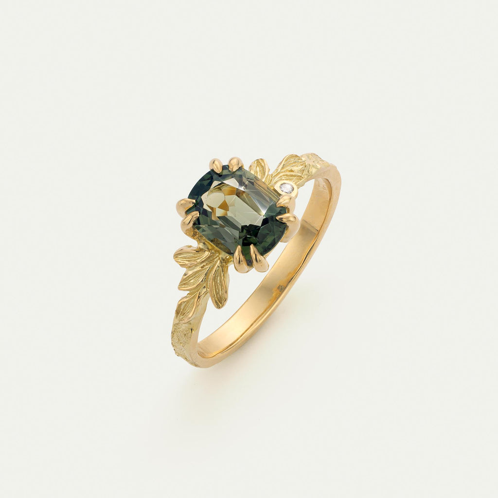 Deze prachtige groene toermalijn komt volledig tot zijn recht in deze 18kt geel gouden ring!