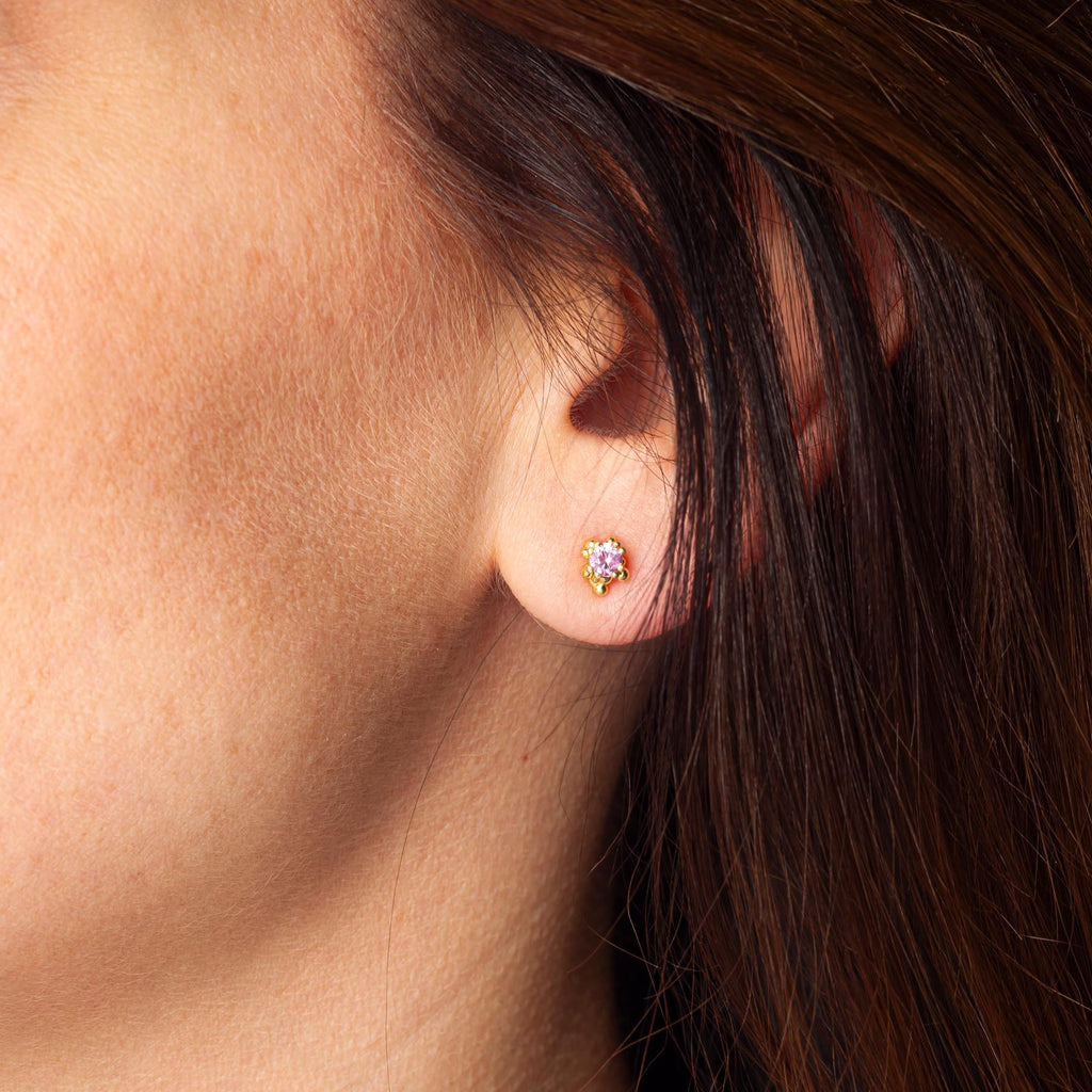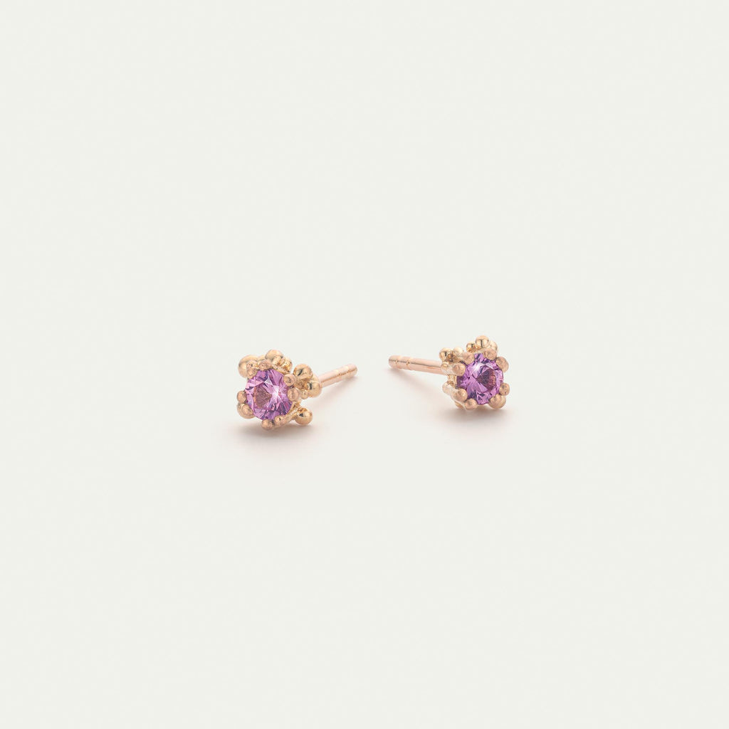 Pentas oorbellen beschikbaar in verschillende kleuren 18kt goud en roze saffiertjes.