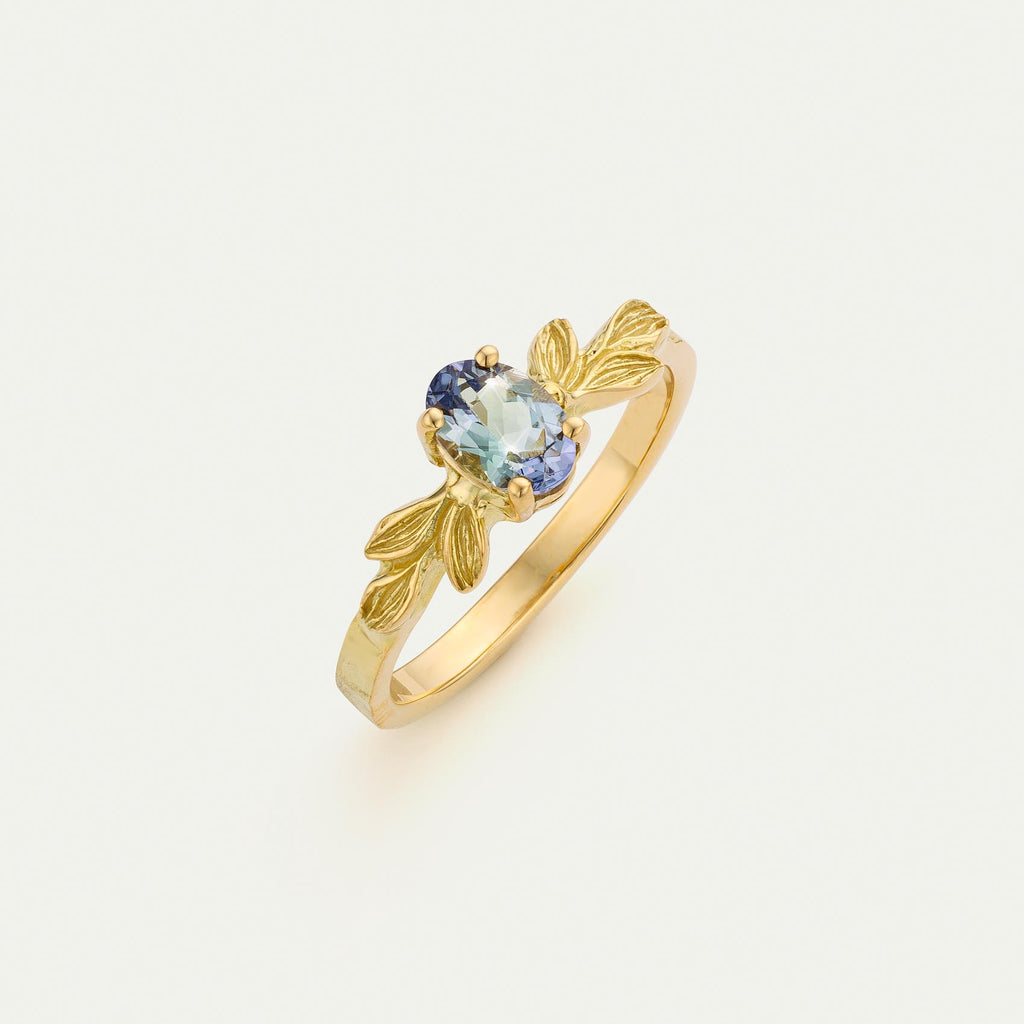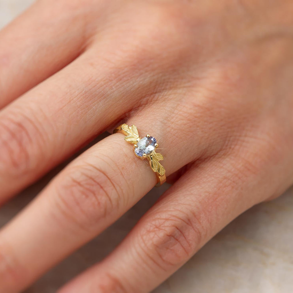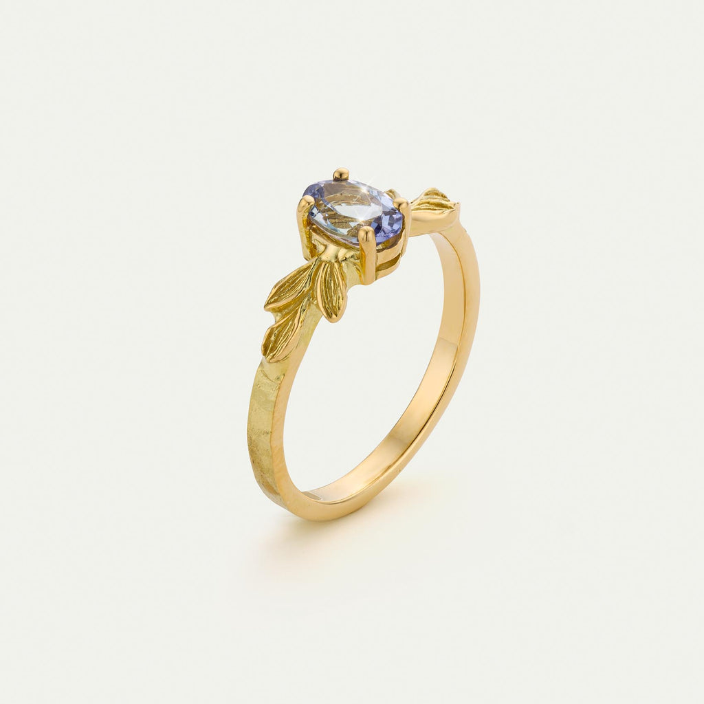 Fijne ring in 18kt geel goud met onbehandelde natuurlijke tanzaniet van 6x4mm.