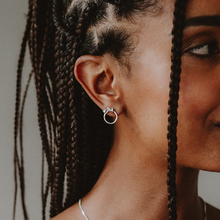 Oorbellen in de vorm van een cirkel met blaadjes in zilver.